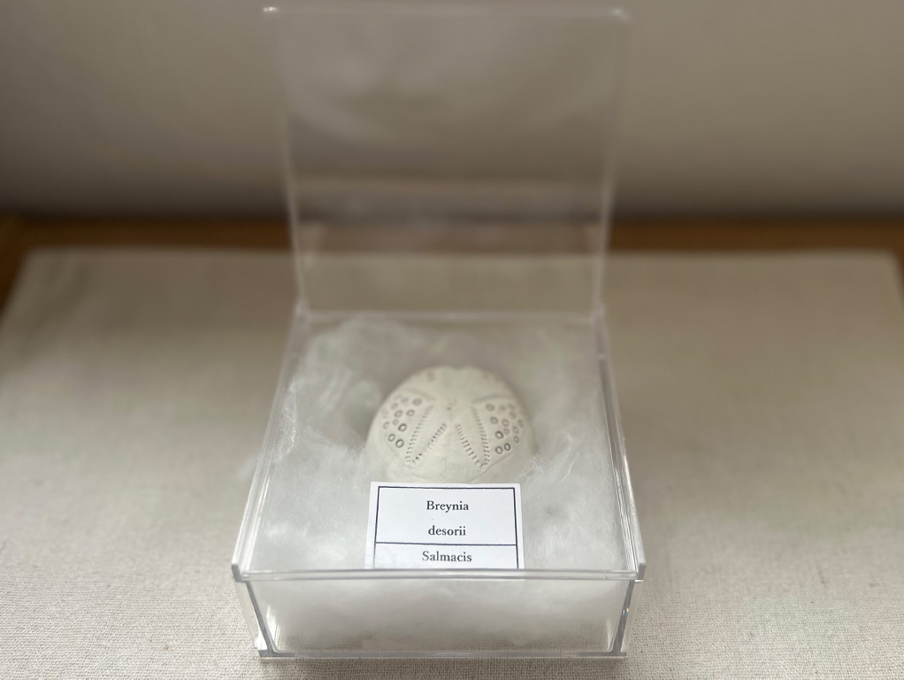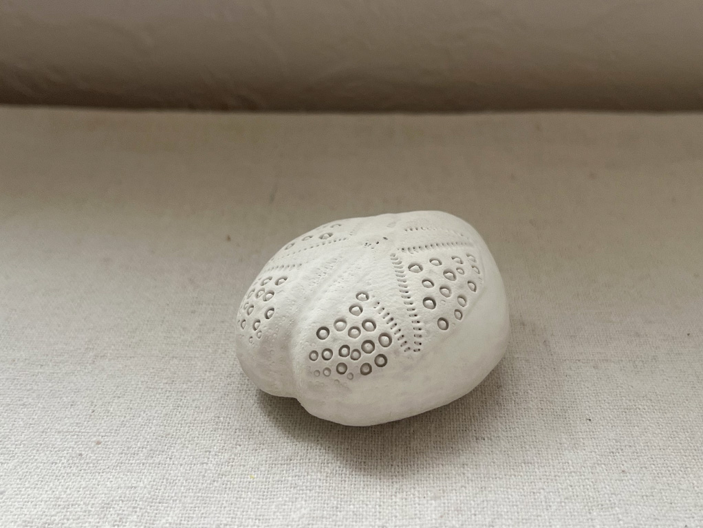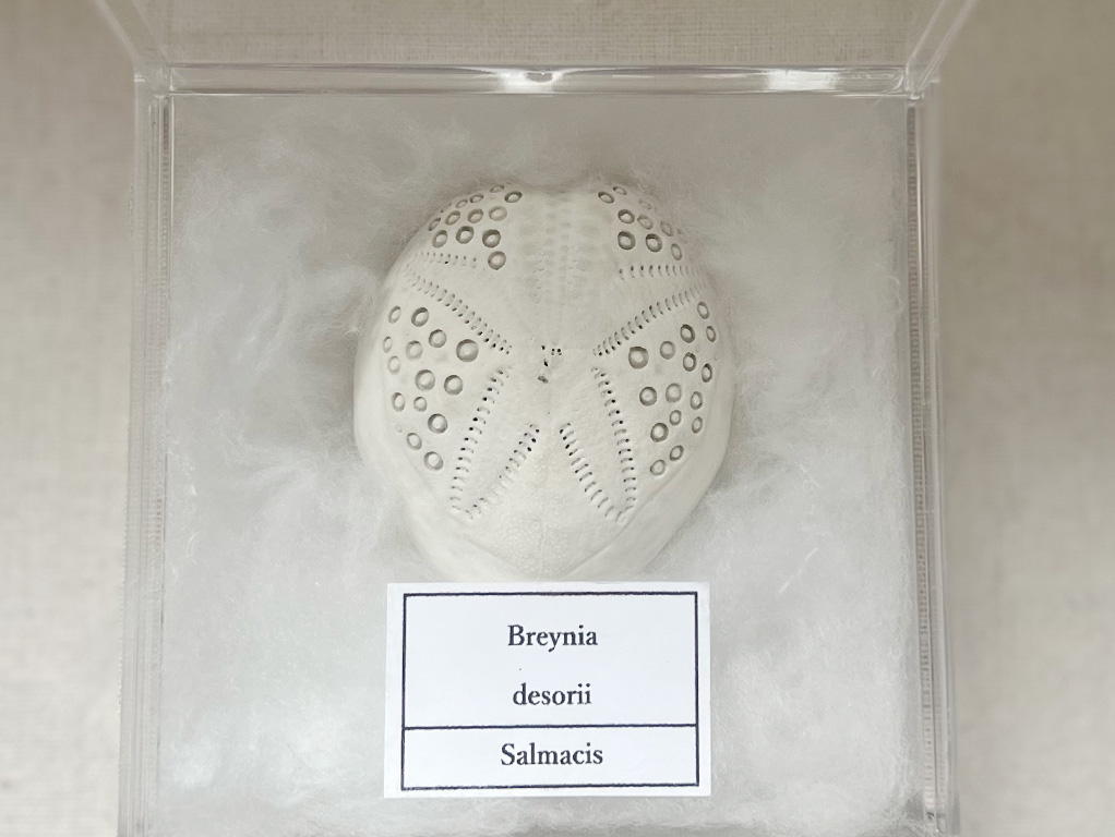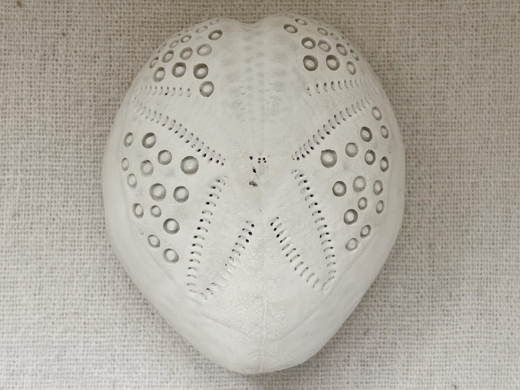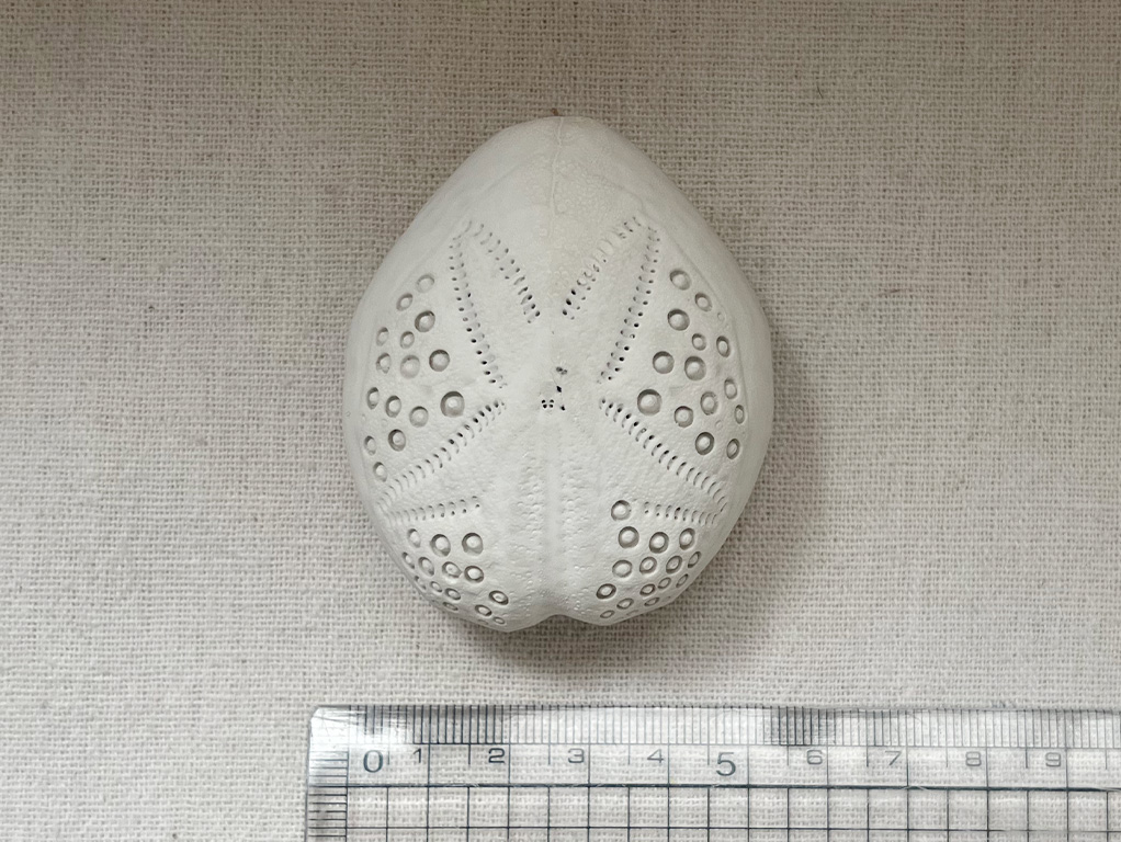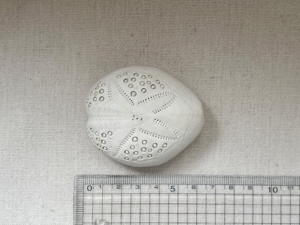 誕生日の記念に行ったお店で見つけて「このブンブクはなんだろう?」と思って手に取りました。家に帰った後、「あなたの知らないウニの世界」で調べてみると、ヒラタブンブクモドキの一種であることが分かりました。前に持っていたヒラタブンブクとくらべてみると、殻の厚さがずいぶんと分厚いです。残念ながら、持っていたヒラタブンブクは割れてしまいもうありませんが、できれば二つを並べてケースに入れて飾りたかったです。